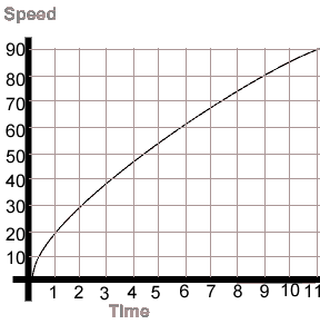 The gradient of he speed-time graph represents the acceleration. Obviously the gradient is slowly decreasing as the journey goes on. The acceleration, therefore, is slowly decreasing.