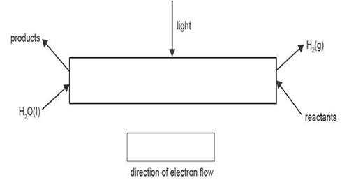 3. Lithium-ion cells are used in many electronic products. ii. Calculate the mass of LiC6 produced when the cell is recharged using a current of 1.25 A for 1.00 hour. Solution b. Artificial photosynthesis can be used to produce hydrogen from water in acidic conditions. A simplified diagram of the acidic artificial photosynthesis process is i. Identify the overall energy transformation that occurs during artificial photosynthesis. 1 mark Solution ii. In the box shown in the diagram, draw an arrow to indicate the direction of electron flow. 1 mark Solution iii. Explain how the electrical charge in artificial photosynthesis processes is balanced given that electrons only flow in one direction. 2 marks Solution |