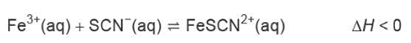 3) The reaction between iron(III) ions, Fe3+(aq), and thiocyanate ions, SCN- (aq), produces iron(III) thiocyanate ions, FeSCN2+(aq).