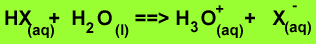 The concentration of strong acid in a solution will be equal to the concentration of hydronium ions as the reaction represented by the equation below goes almost to completion.
