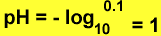 | Example1. Calculate the pH of a 0.1M HCl solution. Step 1 find the concentration of hydronium ions. Since HCl is a strong acid the reaction represented by the equation below has a very high Ka value therefore the reaction proceeds almost to completion. |