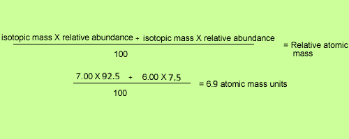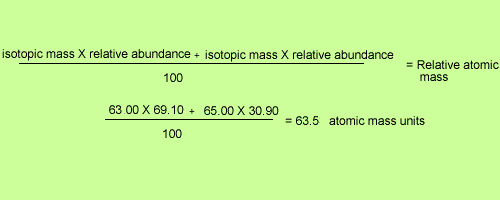 of three different isotopes, its isotopic composition is: So how do we come up with the relative atomic mass of oxygen as being 16? The relative atomic mass of any element is the weighted average of the isotopic masses. The calculations are as follows. Ar of oxygen = (16 X 99.76 + 17 X 0.04 + 18 X 0.2) / 100 = 16 atomic mass units. So the formula