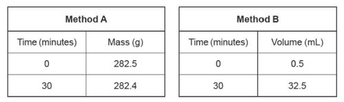 3. Lucia, a VCE student, investigated the production of bioethanol from the fermentation of glucose solution in the presence of yeast. Enzymes in yeast assist with the fermentation reaction. Lucia trialled two methods for the investigation, Method A and Method B. Both methods were trialled once. Write a balanced chemical equation for the production of bioethanol from glucose. 1 mark Solution Solution b. Lucia recorded the followi i. Calculate the amount, in mol, of gas produced using Method A. The molar mass of the gas produced is 44.0 g moI - 1. 1 mark Solution Solution Solution Solution