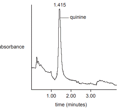 1. due to the range of different compounds contained in its bark. One of the useful medicinal compounds in its bark is quinine, C20H24N2O2, which is used to make tonic water. Tonic water sold today has a much lower concentration of quinine than in the past. a. High-performance liquid chromatography (HPLC) is commonly used to detect both the presence and concentration of quinine in tonic water. The HPLC chromatograph of a sample of tonic water is shown below.