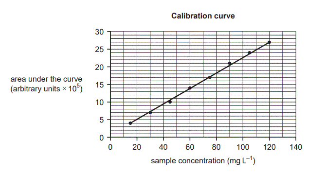 iii. State why the calibration curve should not be used to test a sample of tonic water that has a mean concentration of 130 mg L−1 . (1 mark) Solution