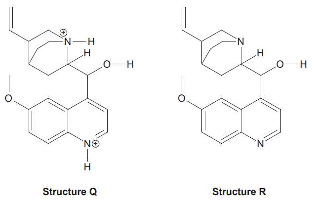 Identify which structure, Q or R, is most likely to occur at a low pH. Justify your response. (2 marks) Solution |